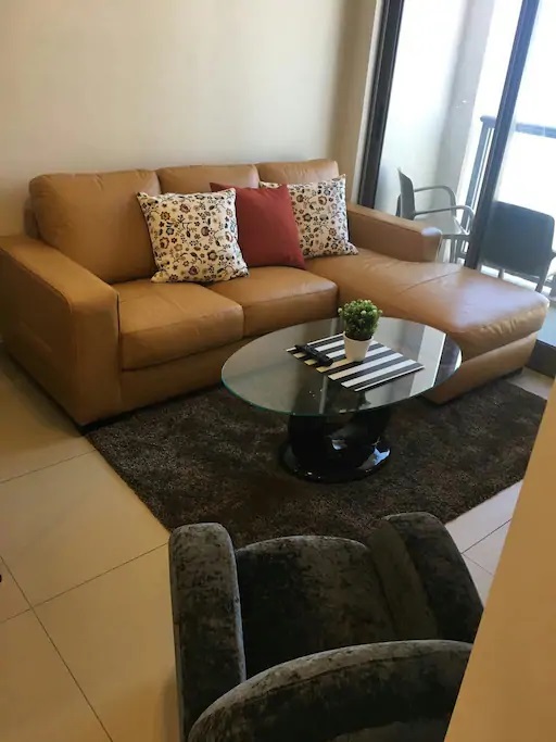 این آپارتمان جدید به طور کامل با مبلمان شده با اتاق نشیمن با مبل L شکل چرم صافار،