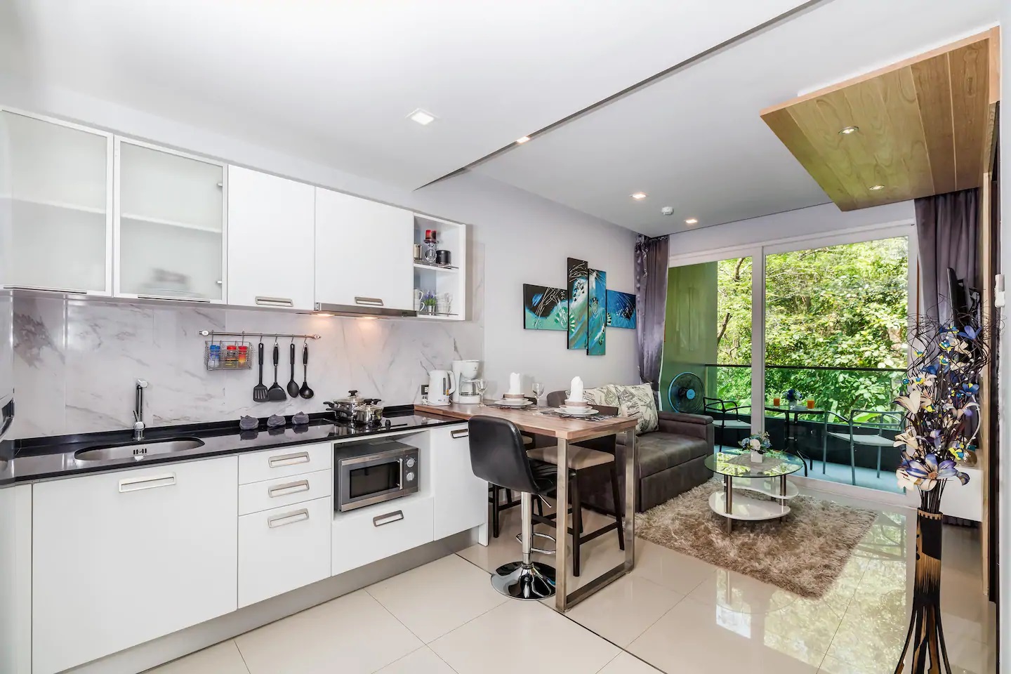 آپارتمان ما واقع در طبقه چهارم است و به خوبی طراحی شده برای خانه تعطیلات در پوکت . یک تخت دو نفره و مبل راحتی که باعث می شود آپارتمان واقعا مناسب هر دو زوج و خانواده باشد! شما می توانید تمام امکانات مورد نیاز خود را در طول تعطیلات در نزدیکی خود پیدا کنید: